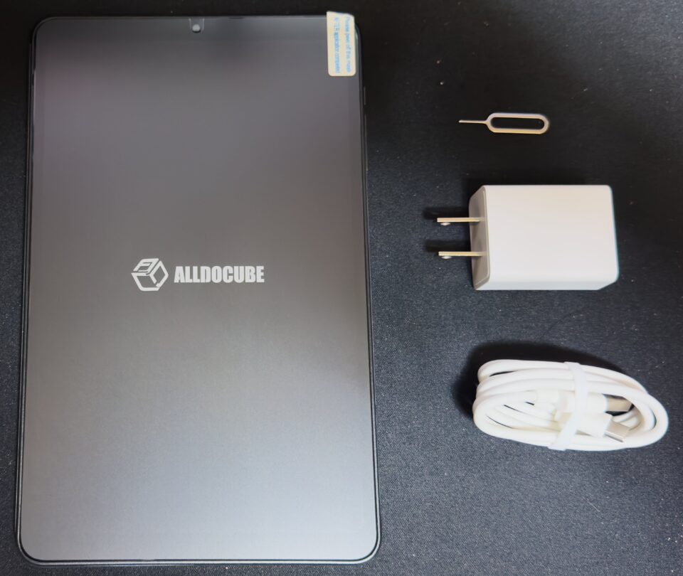 本体にはすでに保護フィルムが張っており、「ALLDOCUBE」の印刷があるフィルムを剥がすとその下に保護フィルムがちゃんと張っているので、気に入らない場合を除きそのまま使い始められます。